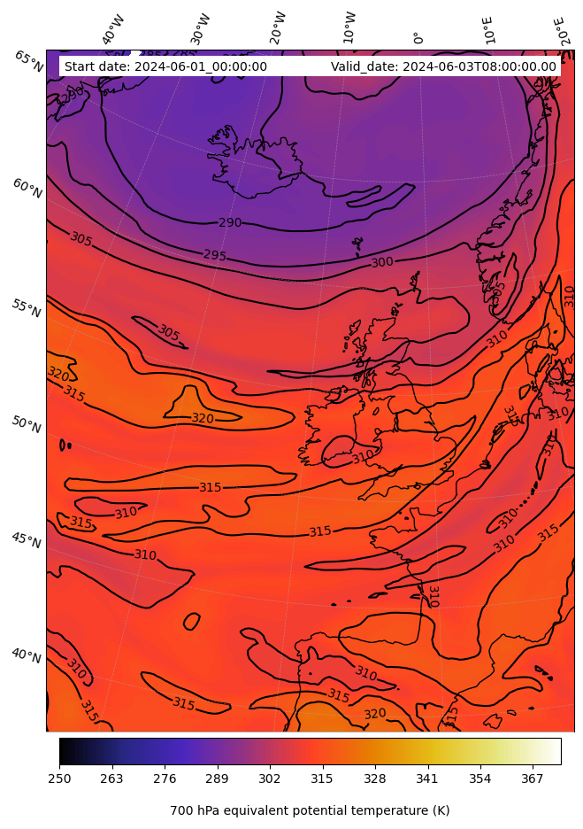 - Equivalent Potential Temperature (K)