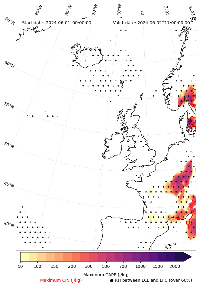 • Maximum CAPE (J/Kg)