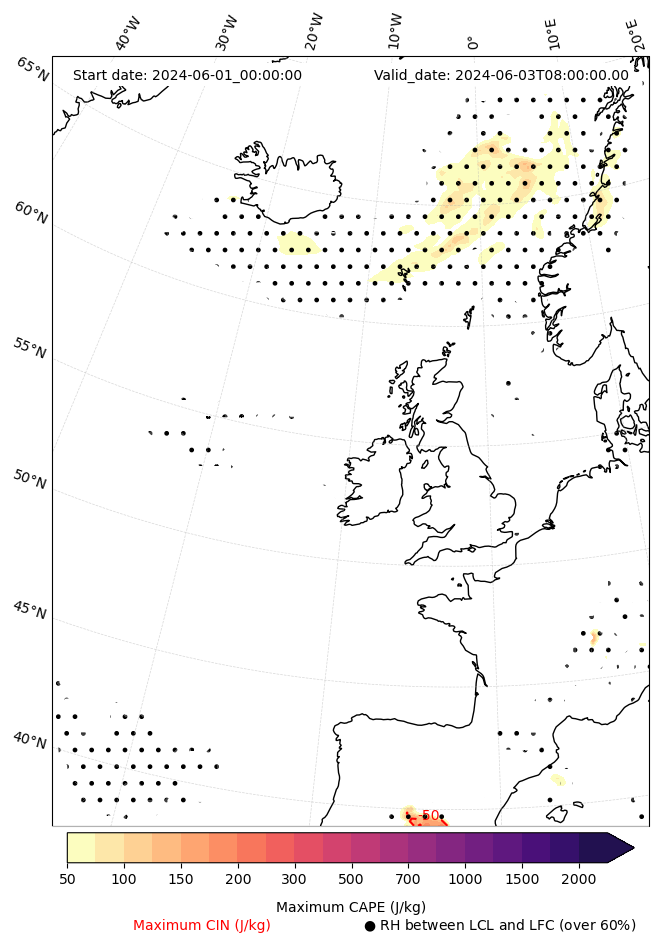 - Maximum CAPE (J/Kg)