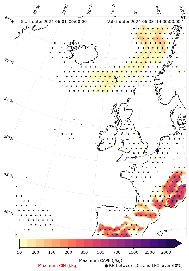 • Maximum CAPE (J/Kg)