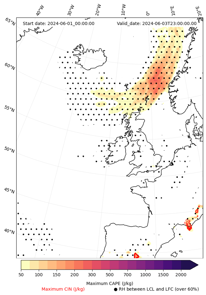 - Maximum CAPE (J/Kg)