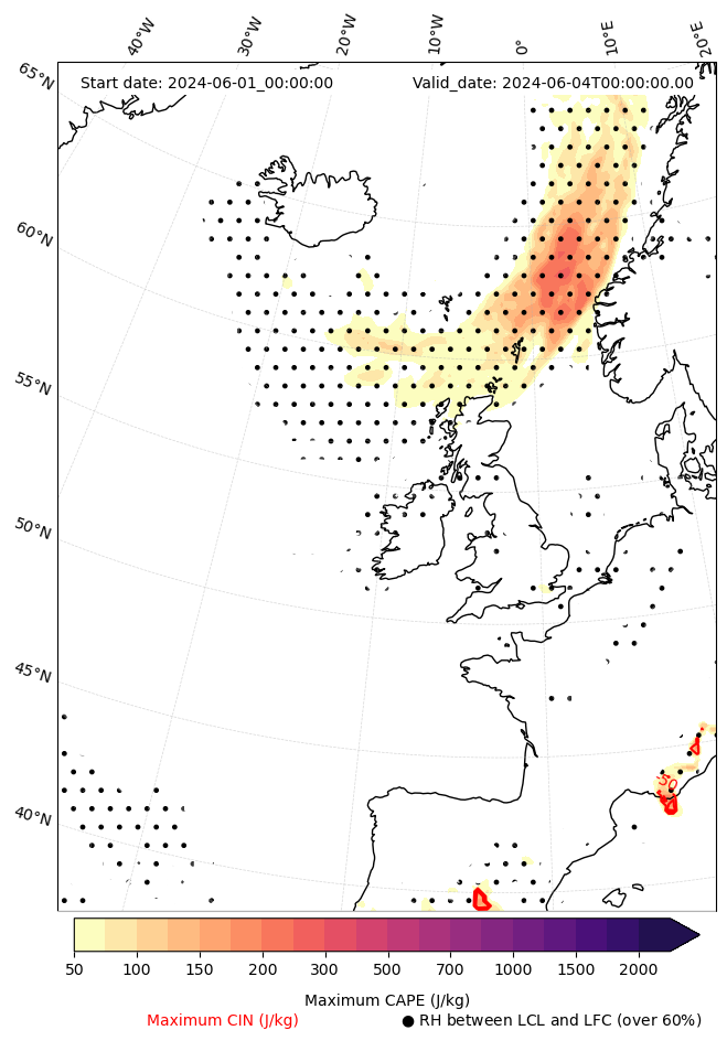 • Maximum CAPE (J/Kg)