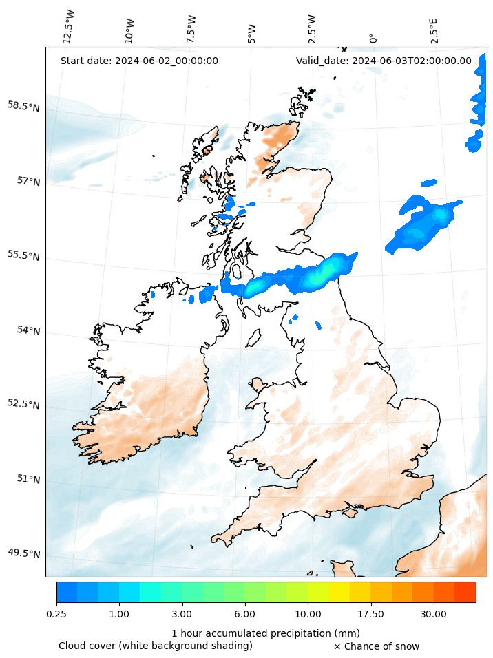 - Snow mixing ratio (g kg¯¹)