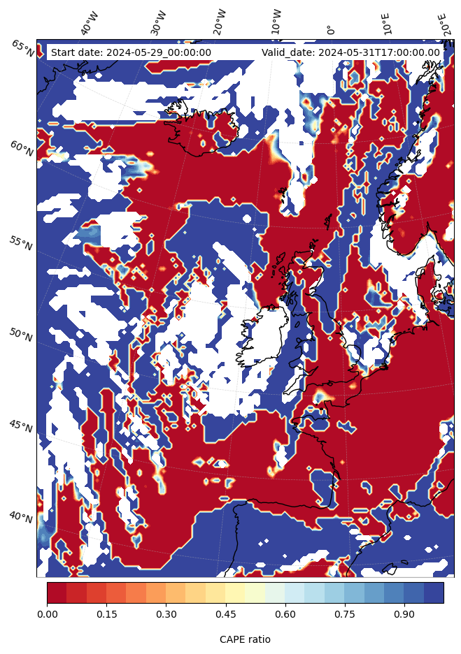 - Maximum CAPE (J/Kg)