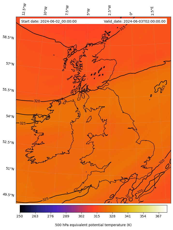 - Equivalent Potential Temperature (K)