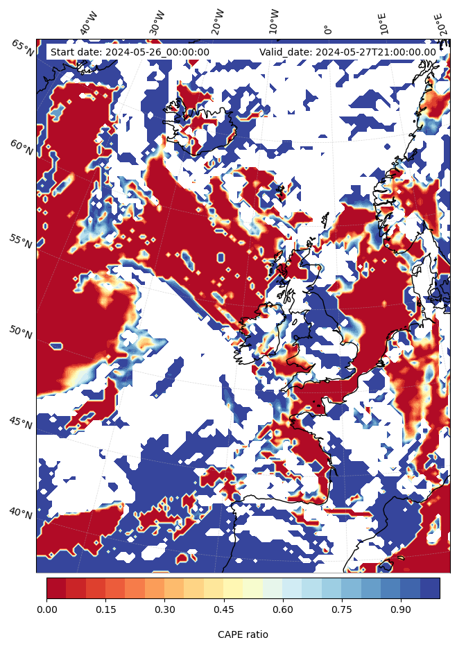 - Maximum CAPE (J/Kg)