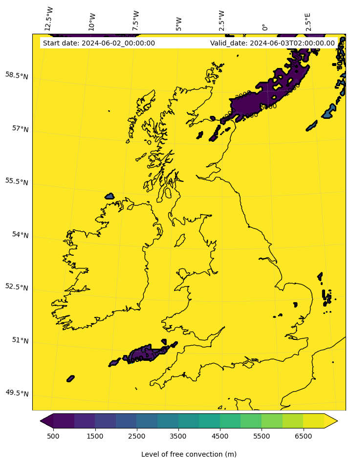 - Level of free convection (m)