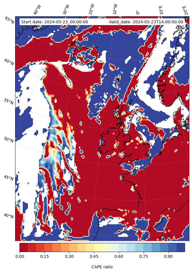 - Maximum CAPE (J/Kg)