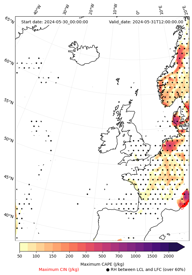 - Maximum CAPE (J/Kg)