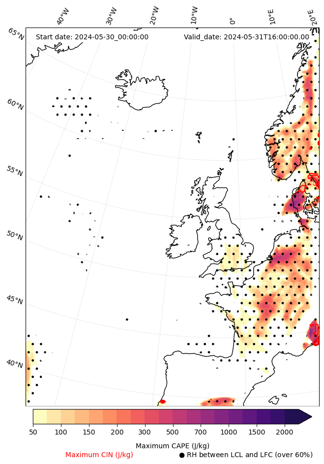 - Maximum CAPE (J/Kg)