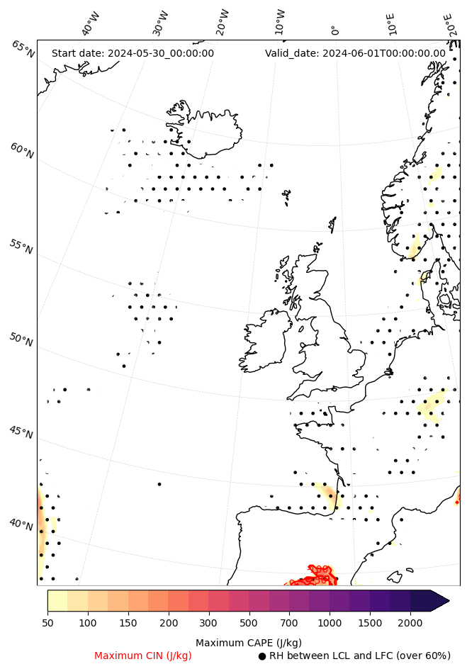 - Maximum CAPE (J/Kg)