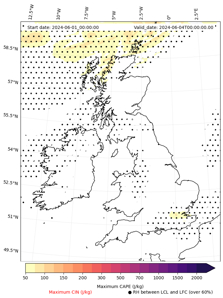 - Maximum CAPE (J/Kg)