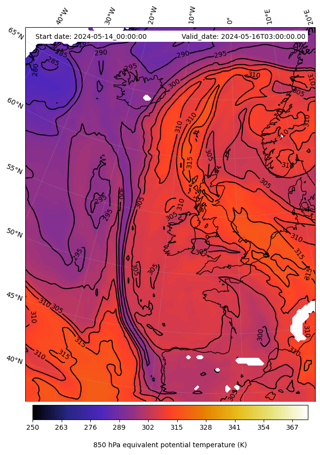 - Equivalent Potential Temperature (K)