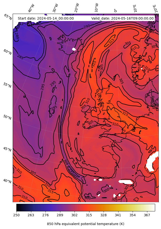 - Equivalent Potential Temperature (K)