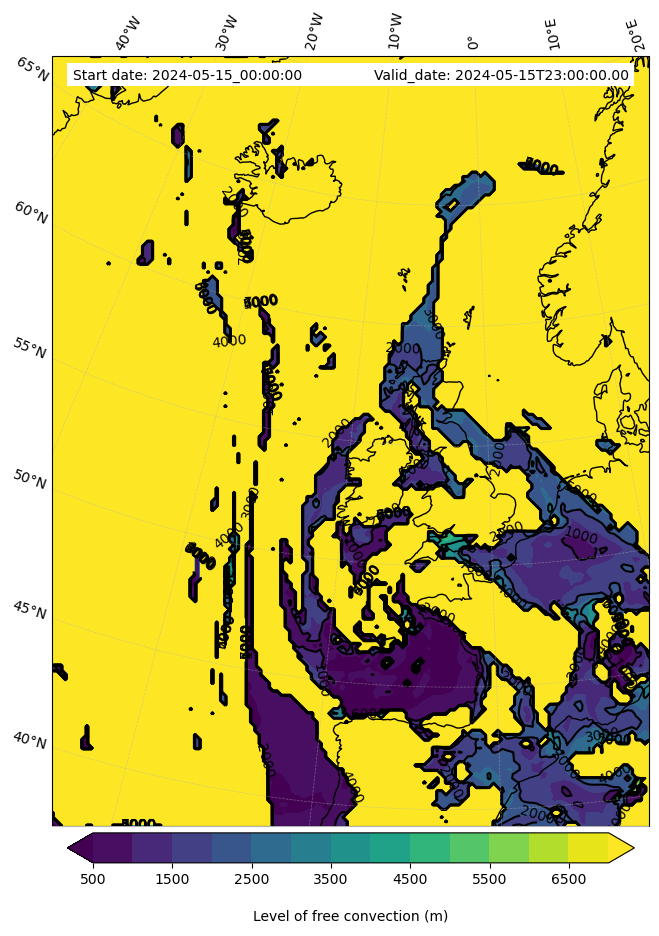 - Level of free convection (m)