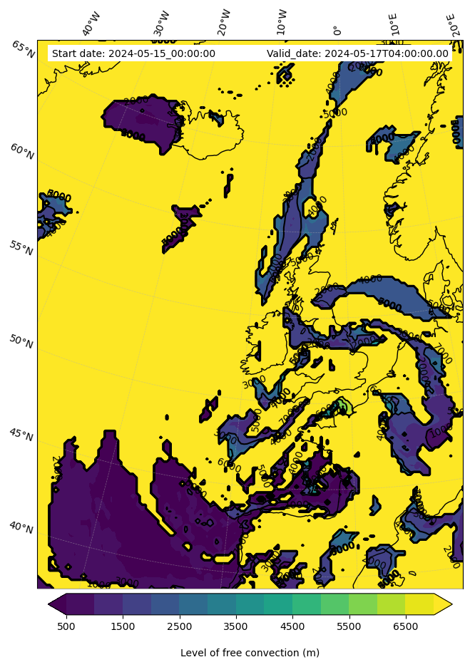 - Level of free convection (m)