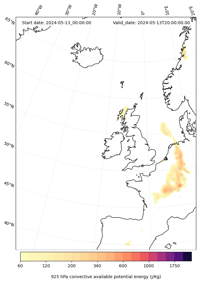 - Maximum CAPE (J/Kg)