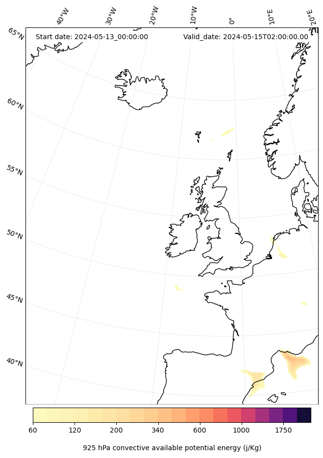 - Maximum CAPE (J/Kg)