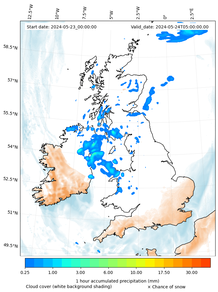 - Snow mixing ratio (g kg¯¹)