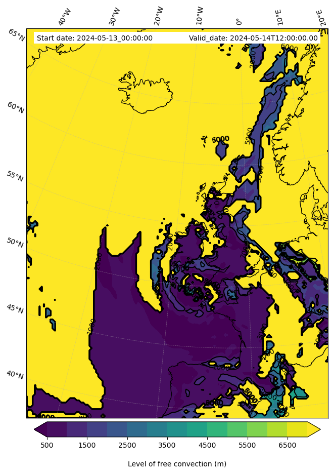 • Level of free convection (m)