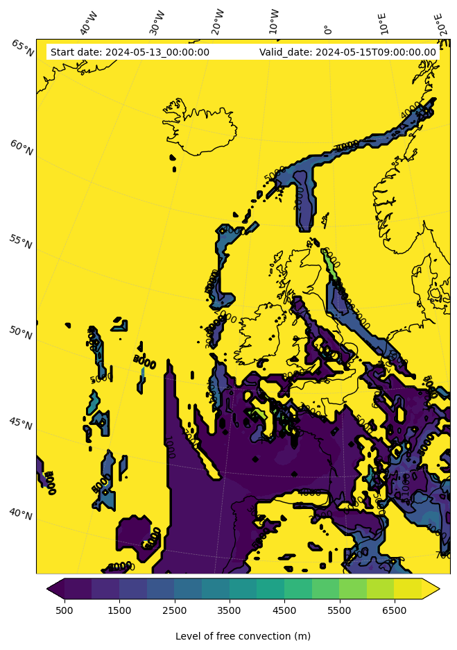 - Level of free convection (m)