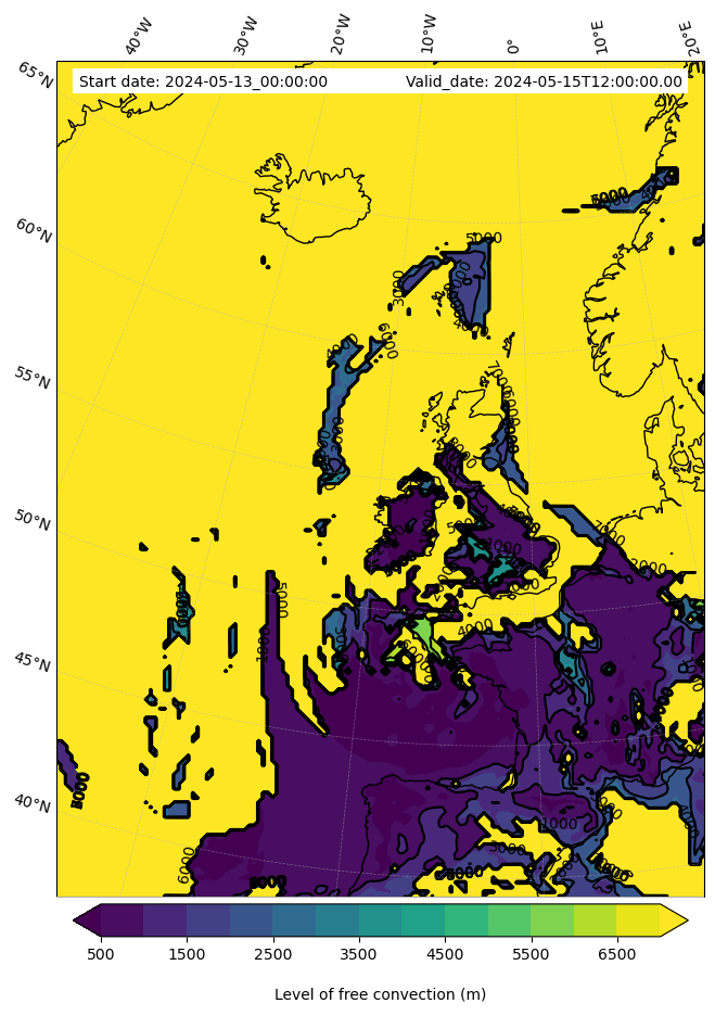- Level of free convection (m)