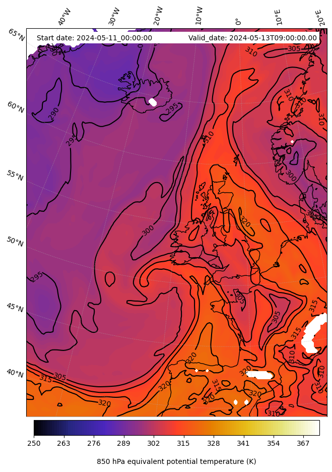 - Equivalent Potential Temperature (K)