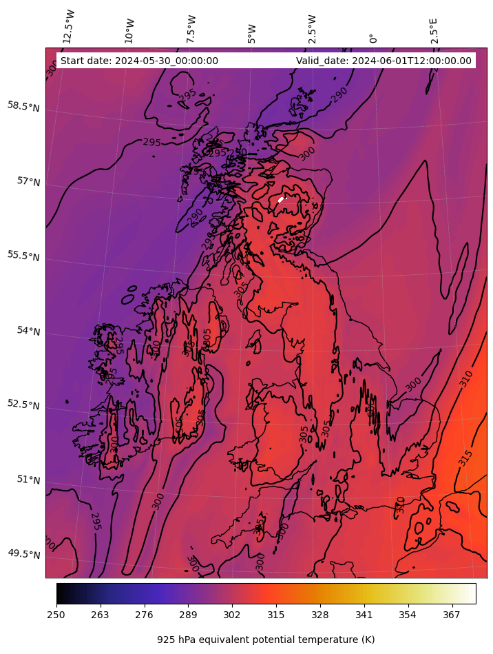 - Equivalent Potential Temperature (K)