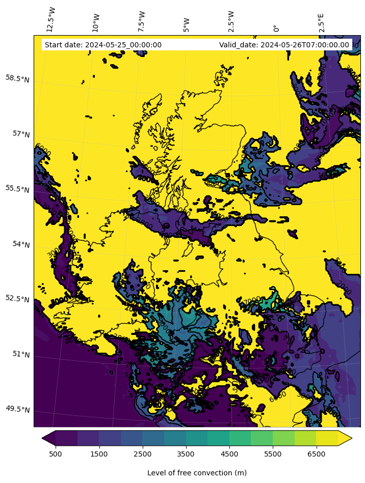 • Level of free convection (m)