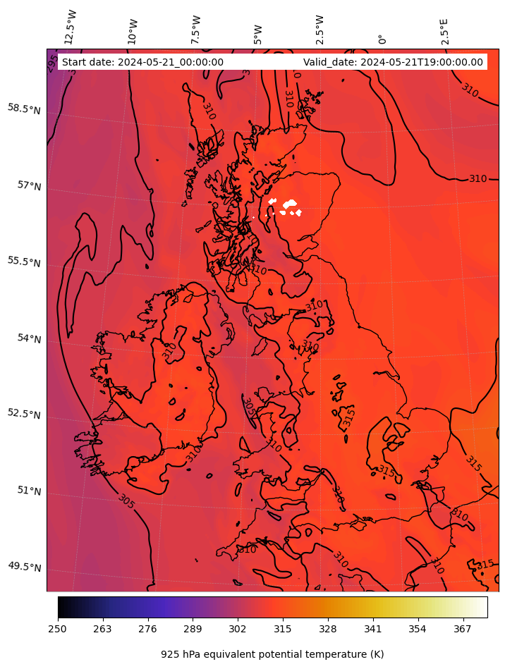 - Equivalent Potential Temperature (K)