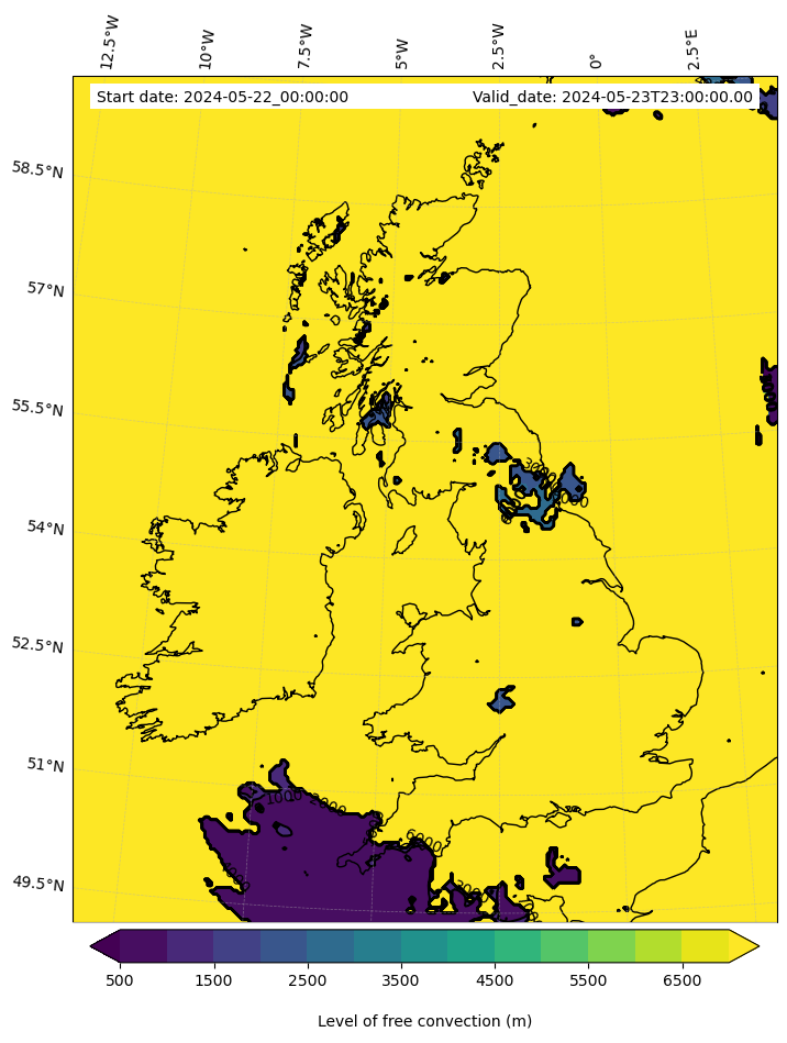 • Level of free convection (m)