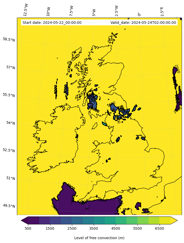 • Level of free convection (m)