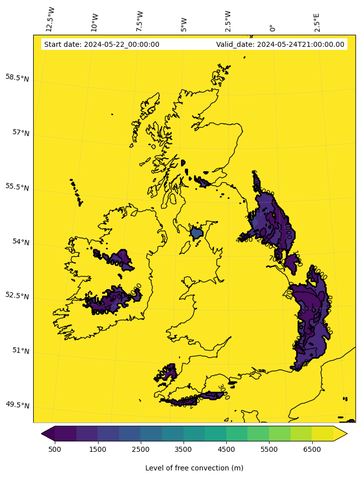 • Level of free convection (m)
