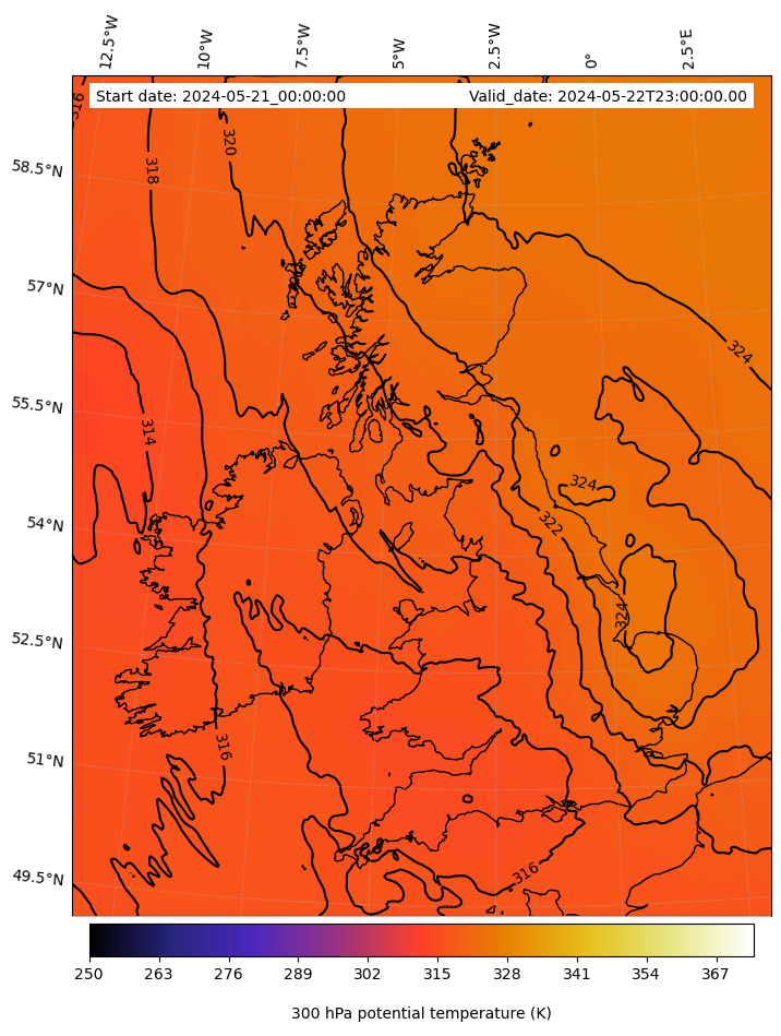 - Equivalent Potential Temperature (K)- 300 hPa