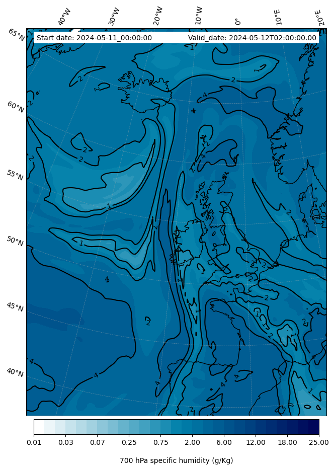 - Water vapor mixing ratio (g kg¯¹)