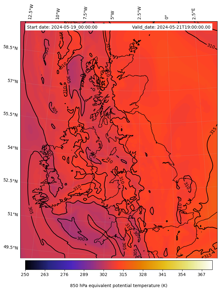 - Equivalent Potential Temperature (K)