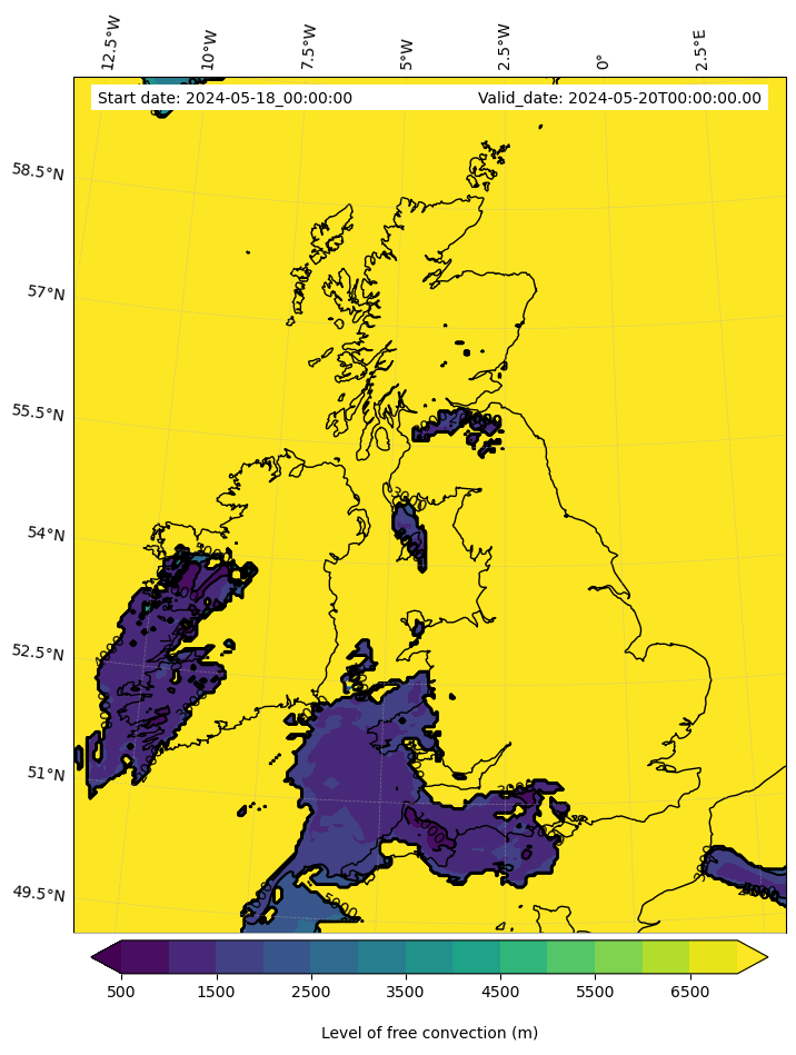 - Level of free convection (m)