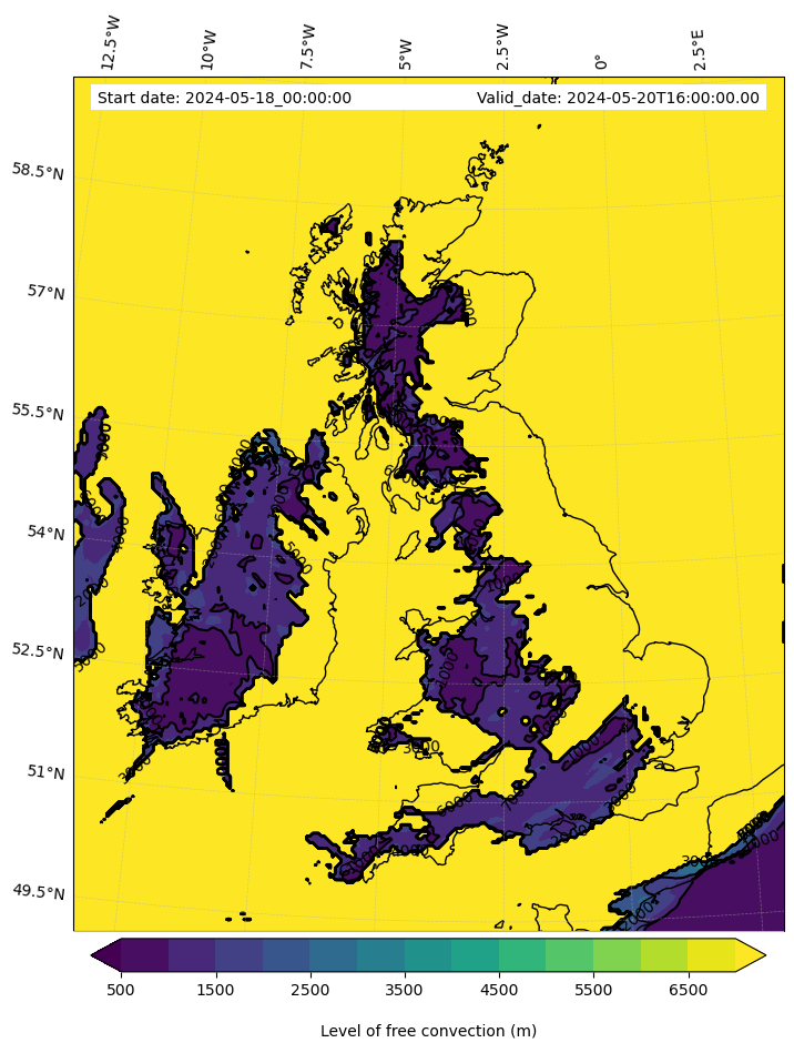 - Level of free convection (m)