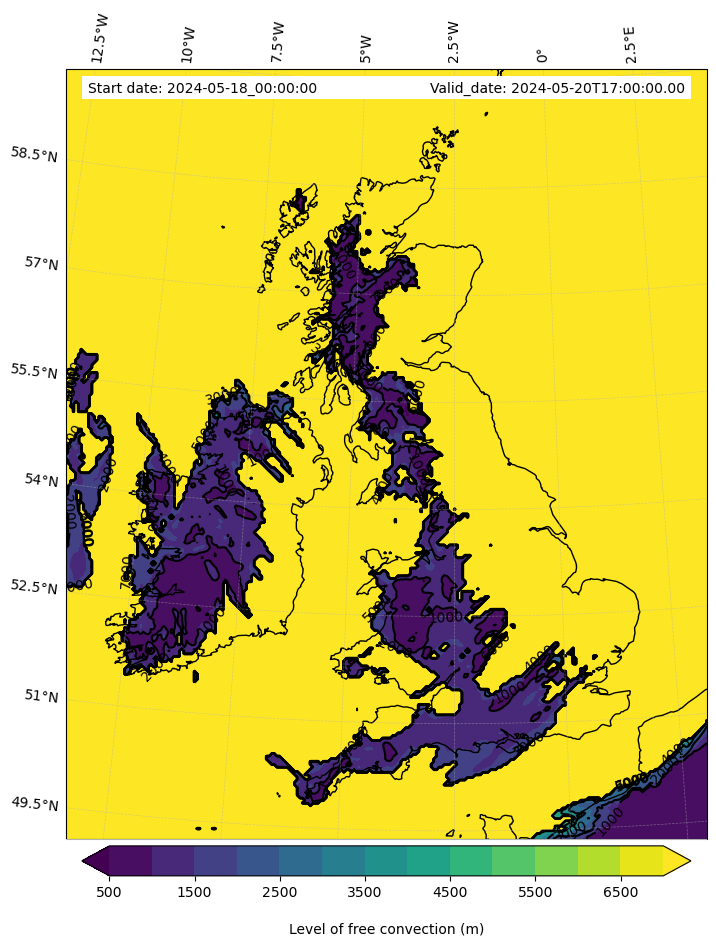 - Level of free convection (m)