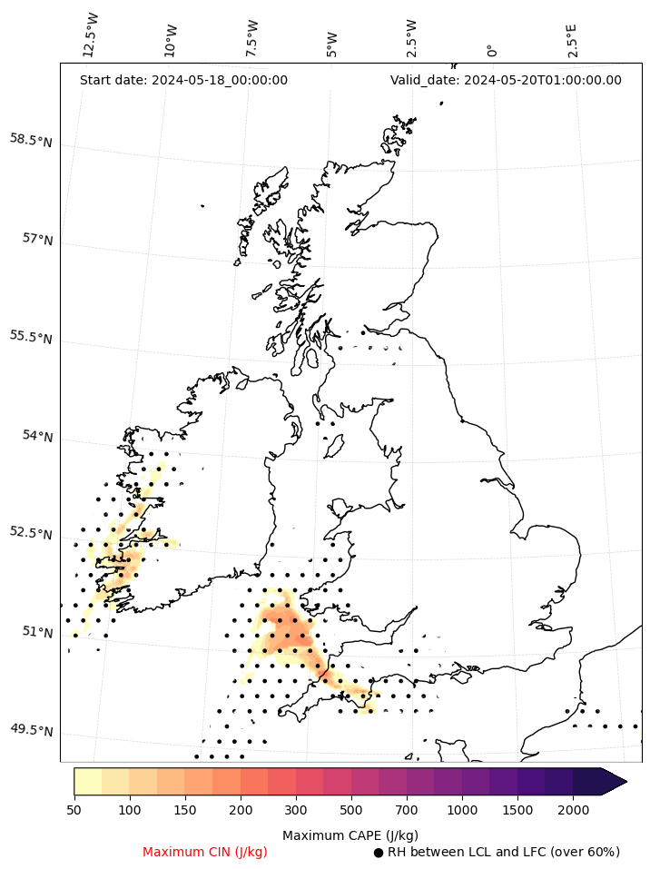 - Maximum CAPE (J/Kg)