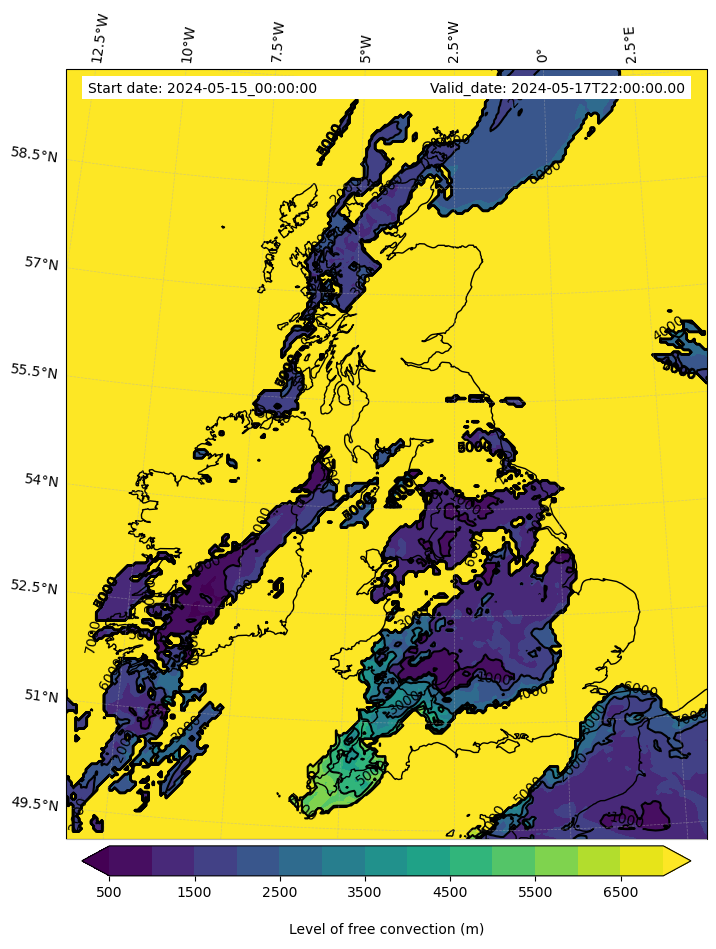 - Level of free convection (m)
