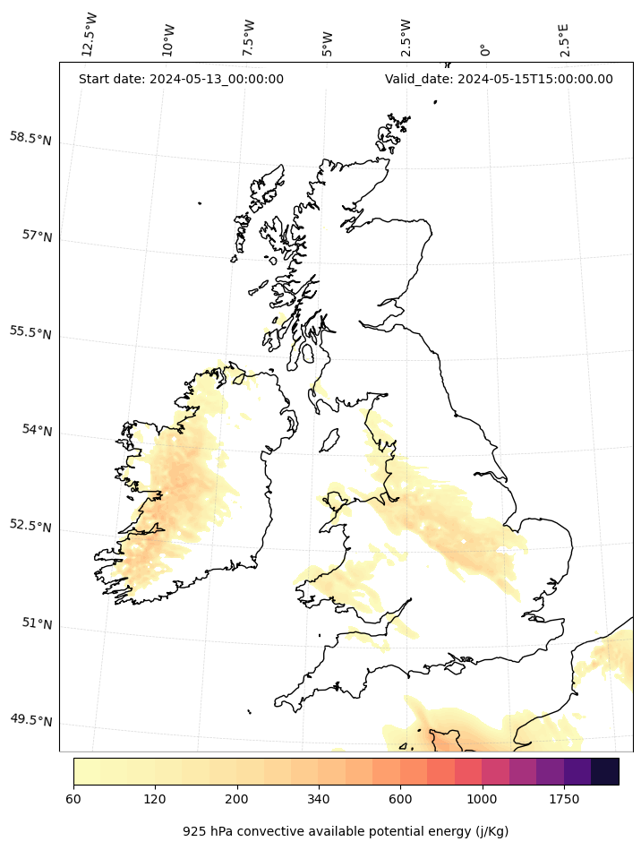 - Maximum CAPE (J/Kg)