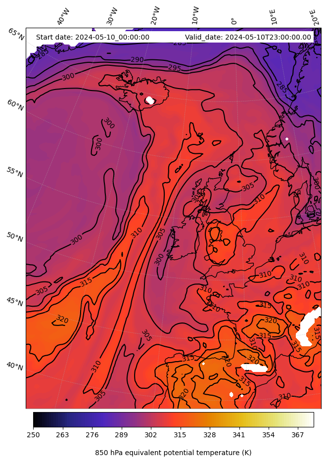 - Equivalent Potential Temperature (K)