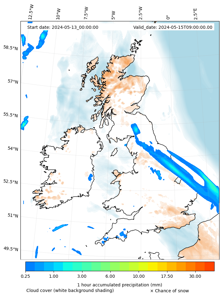 - Snow mixing ratio (g kg¯¹)