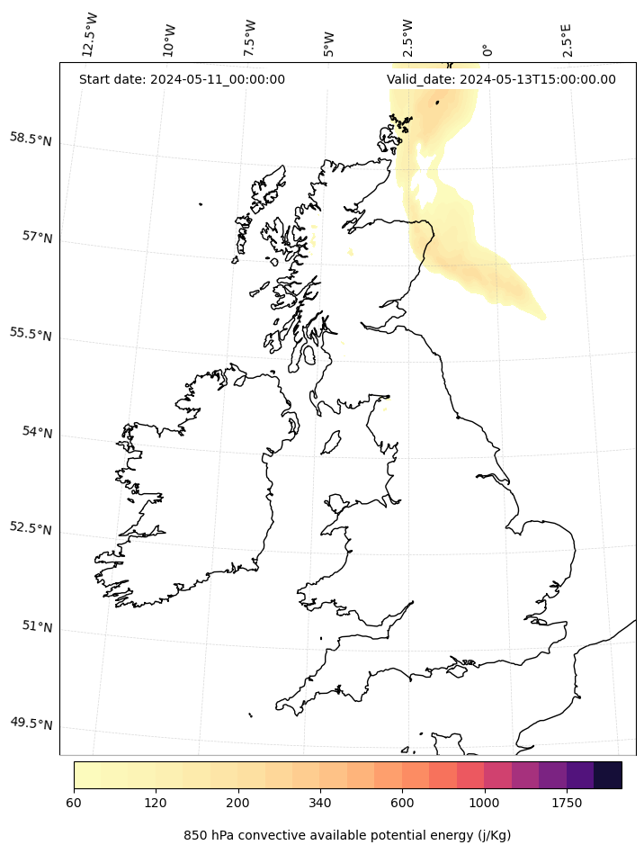 - Maximum CAPE (J/Kg)
