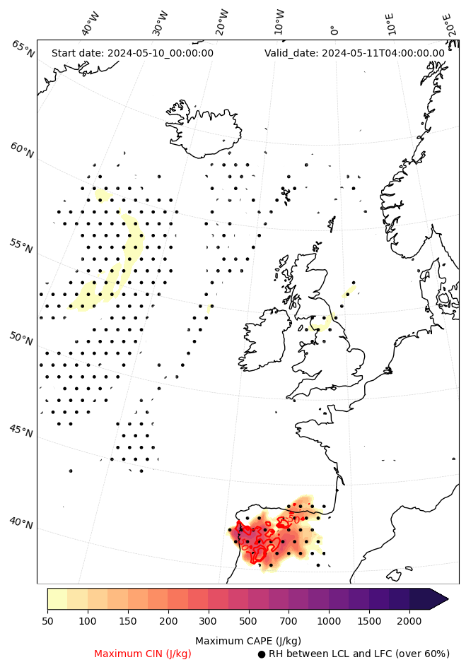 • Maximum CAPE (J/Kg)