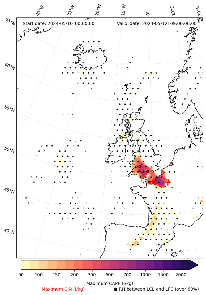 • Maximum CAPE (J/Kg)