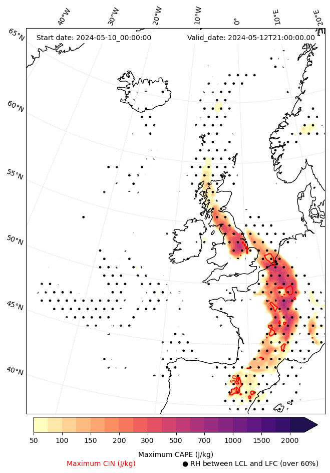 • Maximum CAPE (J/Kg)