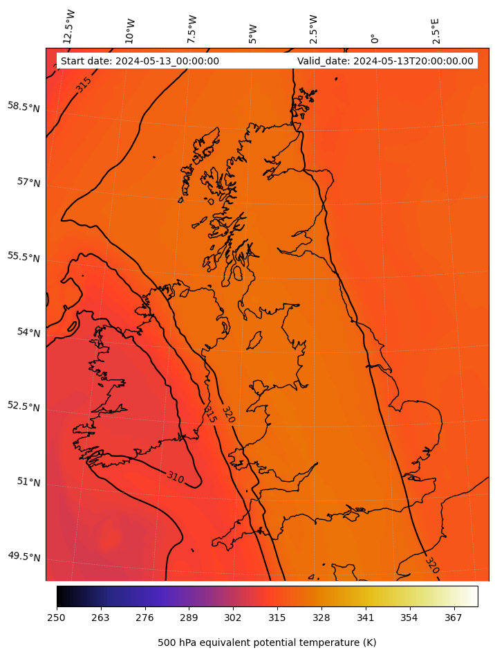 - Equivalent Potential Temperature (K)