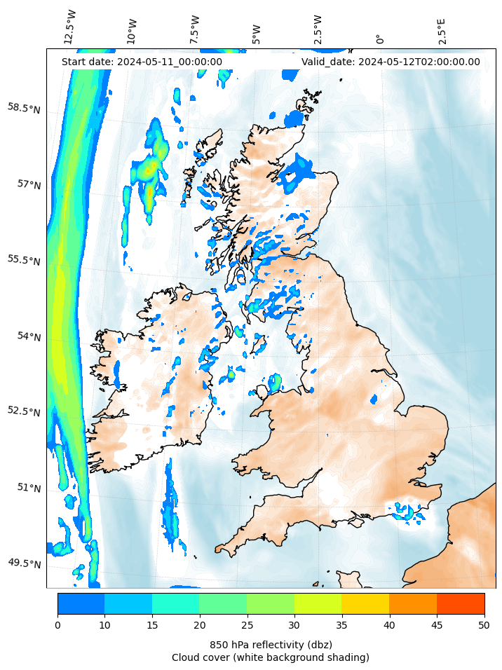 - Cloud water mixing ratio (g kg¯¹)